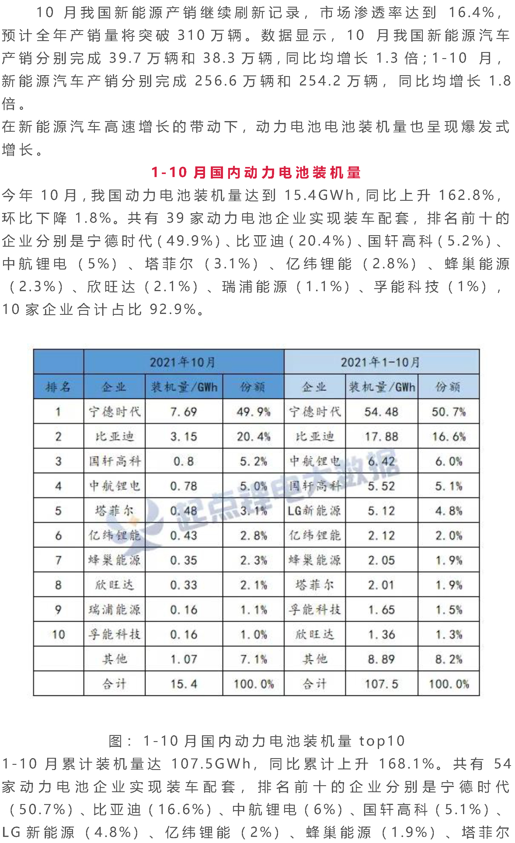 2021年动力电池装机量TOP10