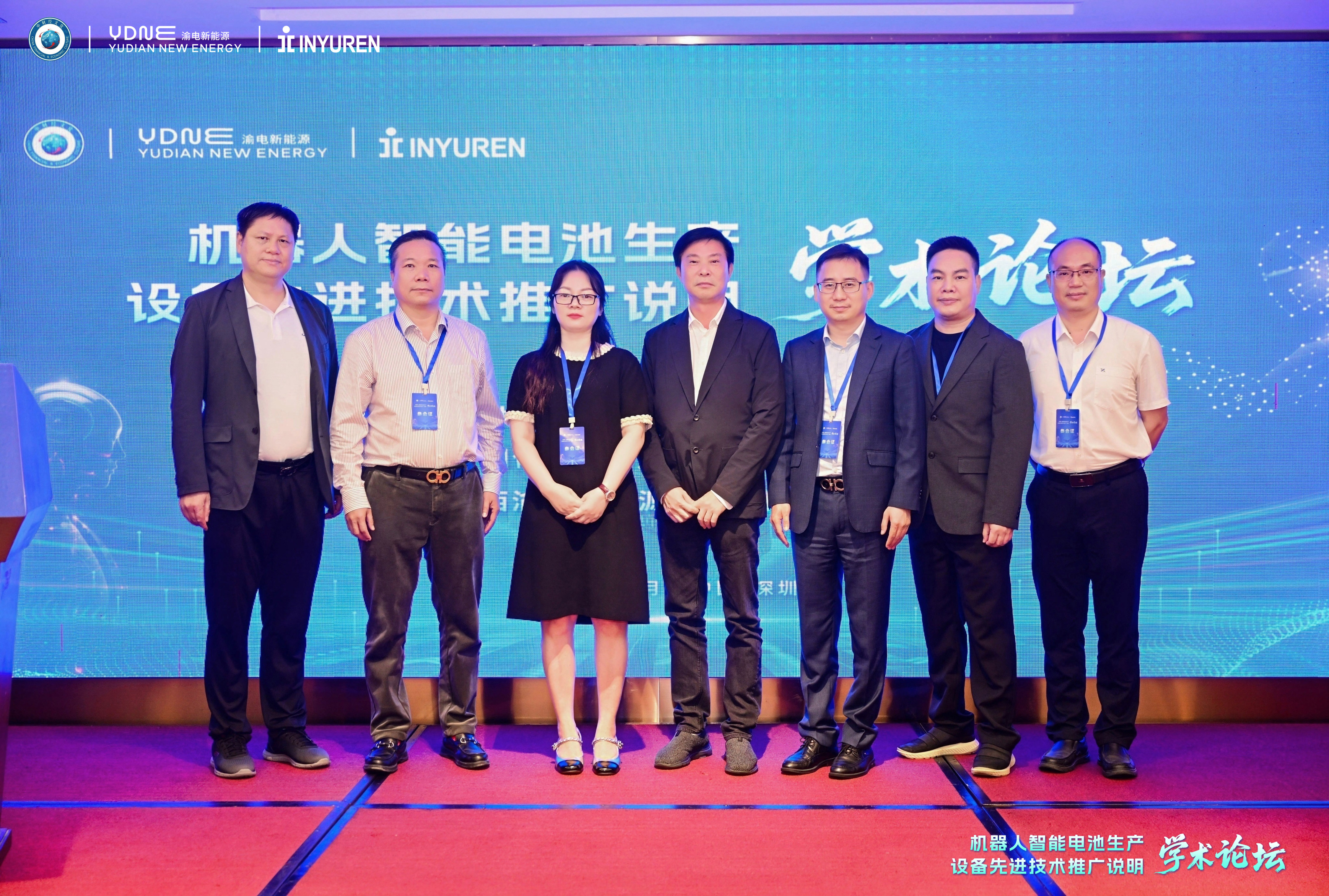 taptap点点体育副总裁曾方(左三)、董事王家砚(右三)、市场负责人刘建宏(右一)出席“机器人智能电池生产设备先进技术推广说明”学术论坛